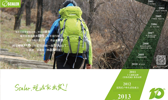 SCALER brande stablished for 10th years.In the same year, SCALER won the "Annual Innovation Award of China ≈Outdoor Industry", the "2013 Comprehensi✘ve Brand Outstanding Award" and the "2013 Favorite Brand of travel$ers", and the general manager Ms. Zeng Hua won the "Annual Outdoor Manager Award&Ωquot; again.